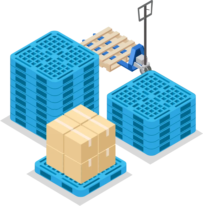物流倉庫や建設現場に必要な資材の販売、パレットやネステナ―、カゴ台車、専用パレットなど、お客様の多様なニーズ応じた幅広い物流関連資材を提供します。